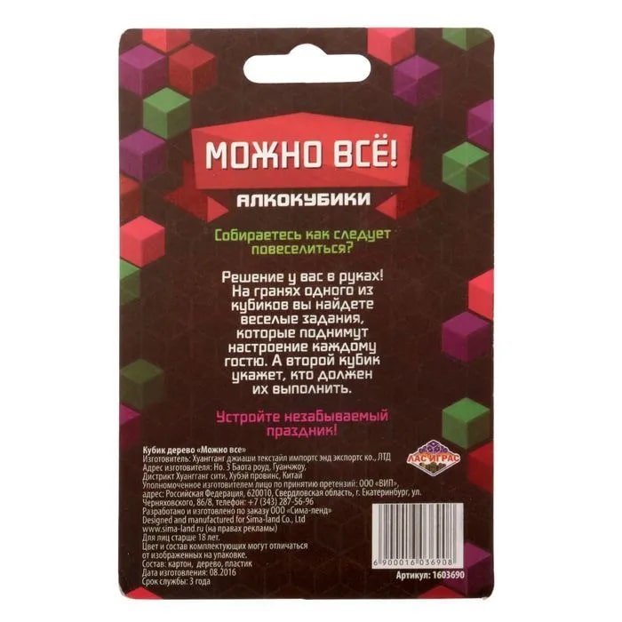 Купить кубик "можно все", алкокубики для принятия решений от 60 руб. с доставкой до пункта выдачи в Кузнецке. Интернет магазин ДекаМаркет. Оплата при получении.